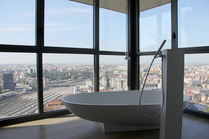 The Bosco Verticale is a complex constructed in Milan, Italy which is designed by Boeri Studio and consist of two residential towers with the height of 112 and 80 meters (27 and 18 floors) and a total area of is 30,501 square meters.