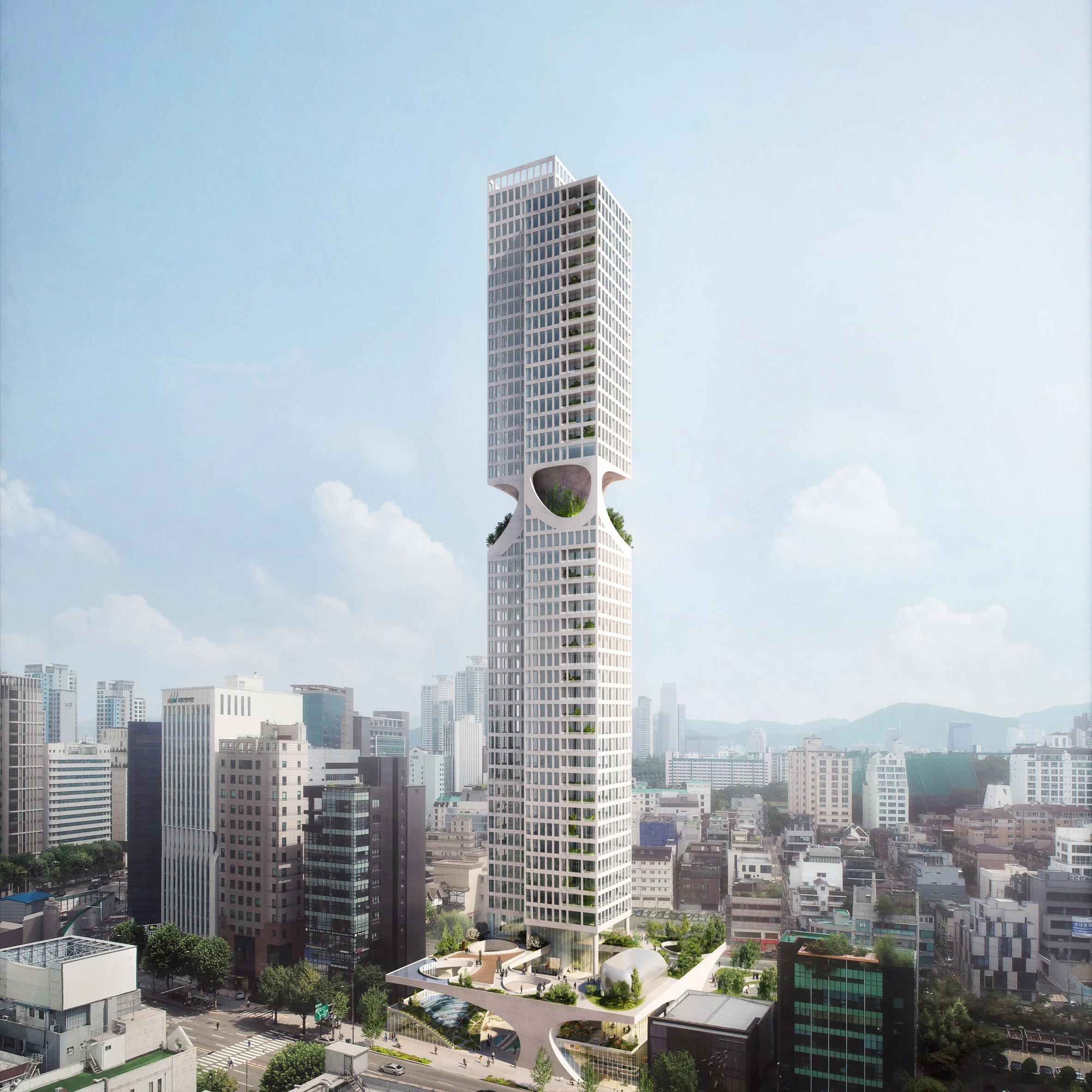 ODA designs skyscraper punctured by "greenery-filled terrarium" in Seoul
