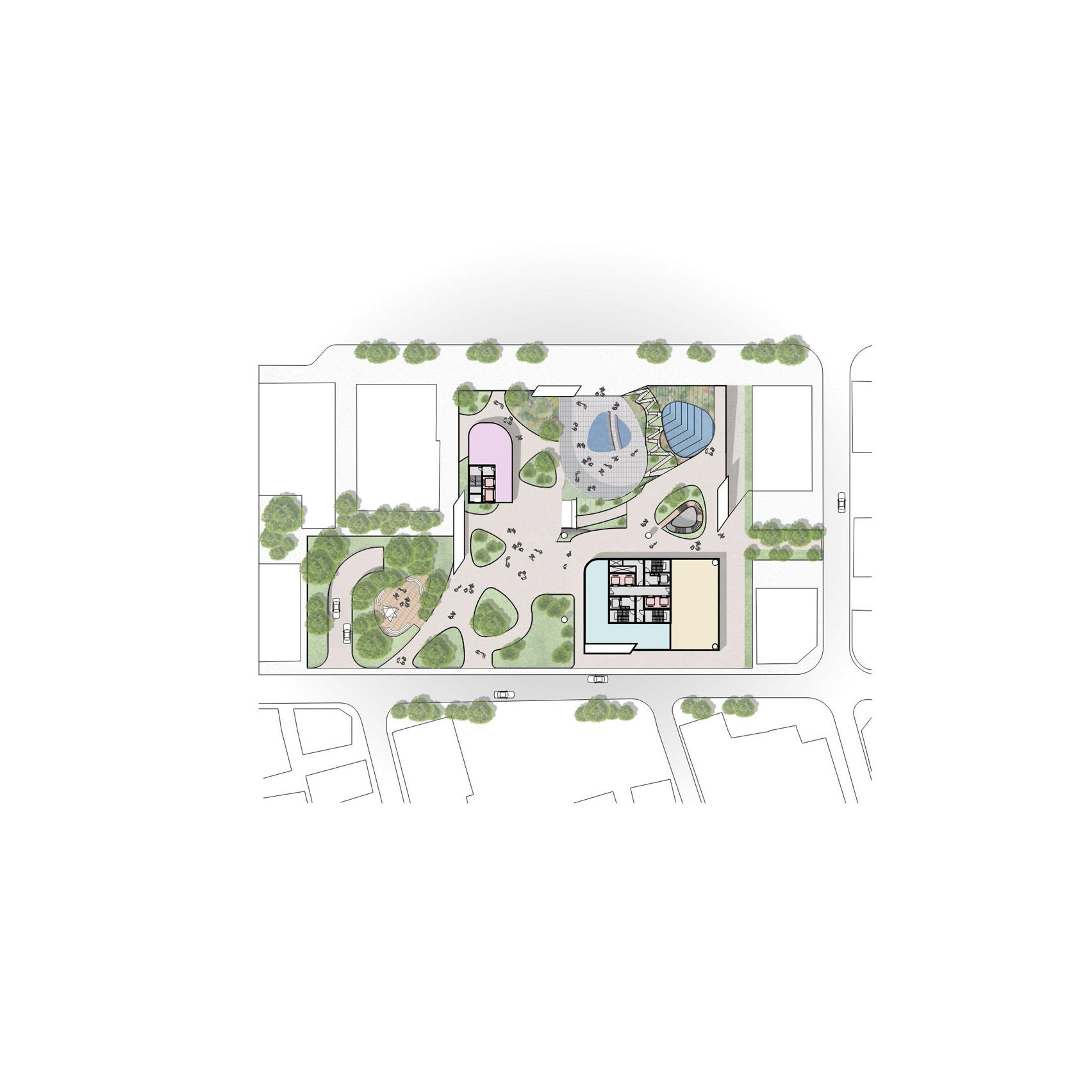 "For the tower's podium, we want to bring the community a space that serves as both a respite from the streetscape," Chen explained.