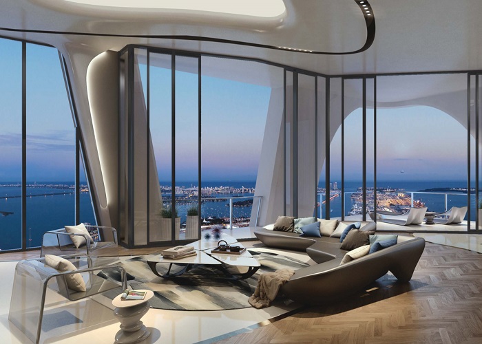 One Thousand Museum is an ultra-luxury residential complex under construction in Miami, US. The complex is designed by the famous deceased architect, Zaha Hadid. The residential skyscraper will rise 62 stories and will contain 83 residences, overlooking Museum Park and Biscayne Bay at 1000 Biscayne Boulevard.