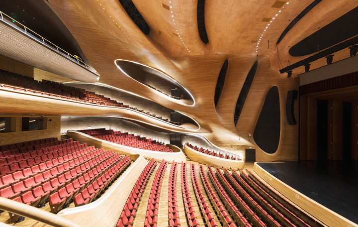 The building complex, designed by MAD Architects as “Cultural Centre of the Future”, is inspired by the frozen wilderness of its surrounds and is saturated in local identity, culture, and art. The design team worked with the motto of ‘lighting the rhythm of the frozen music’. The challenge of the lighting design was in finding ways to reveal the purity and clarity of the space while enriching the visitor’s experience of both the space and the music within.
